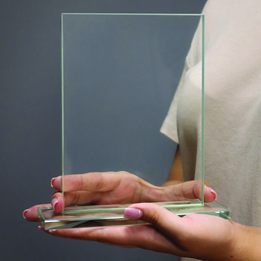 Personalizowany nadruk na szkle pozwala nadać statuetce indywidualny charakter. Możesz dodać: