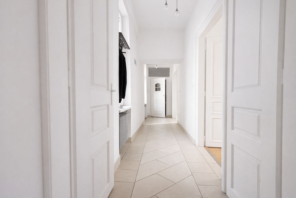 timeless style of the building – wooden parquet floors, high