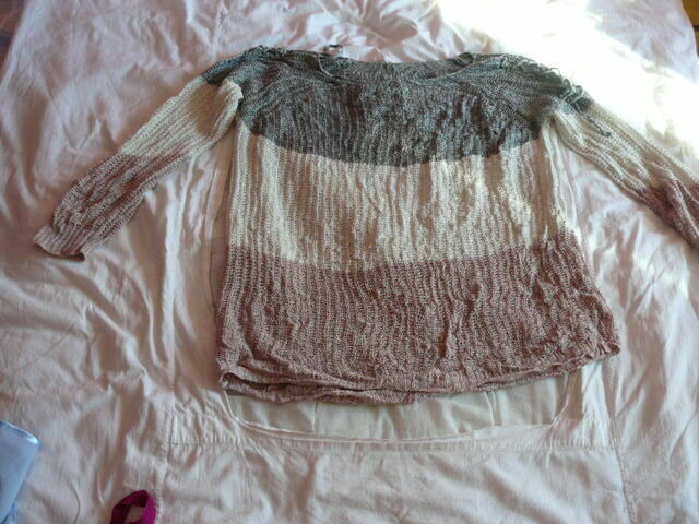 Do sprzedania uzywany sweter bialo-rozowo-popielaty.Szerokosc pod pachami 55 cm,dlugosc 65 cm,dlugosc rekawa 44 cm.Nie wiem czy rzeczywiste wymiary odpowiadaja rozmiarowi L...cvv