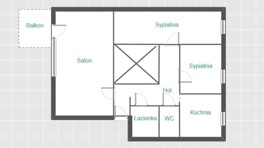 - mieszkanie o powierzchni 63 m2 oraz balkon