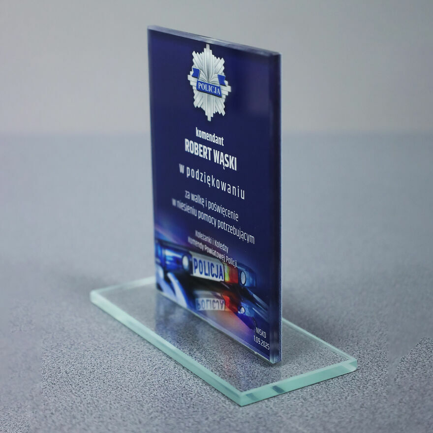 Szklana Statuetka Z Nadrukiem Podziękowanie Dla Policjanta