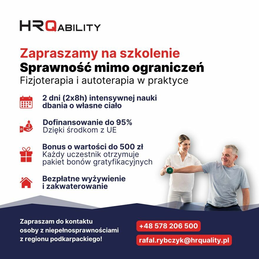 Zapraszamy Cię na dwudniowe, praktyczne szkolenie pod hasłem „Sprawność mimo ograniczeń” realizowane przez wybitnych specjalistów.