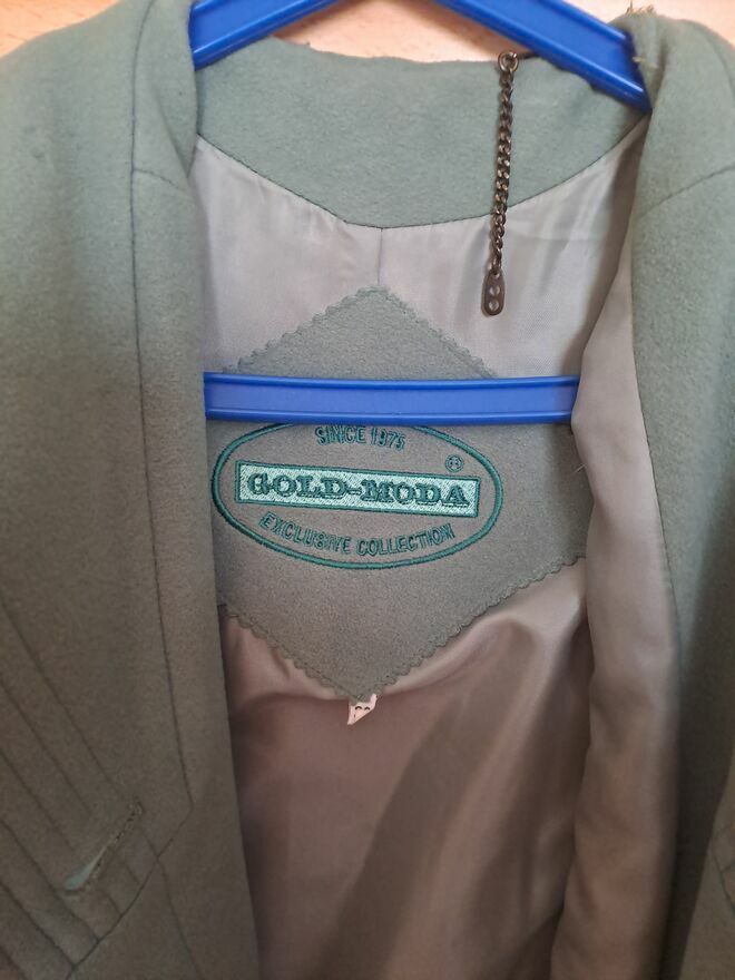 Sprzedam plaszcz z kapturem jesienno - zimowy. Rozmiar 44, firma Gold Moda. Sklad materialu : kaszmir, welna.Stan bardzo dobry.