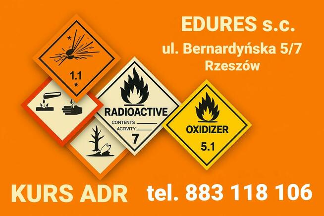Firma EDURES s.c. zaprasza na kurs z przewozu materiałów niebezpiecznych ADR w Rzeszowie Zgłoszenia na najbliższy kurs ...
