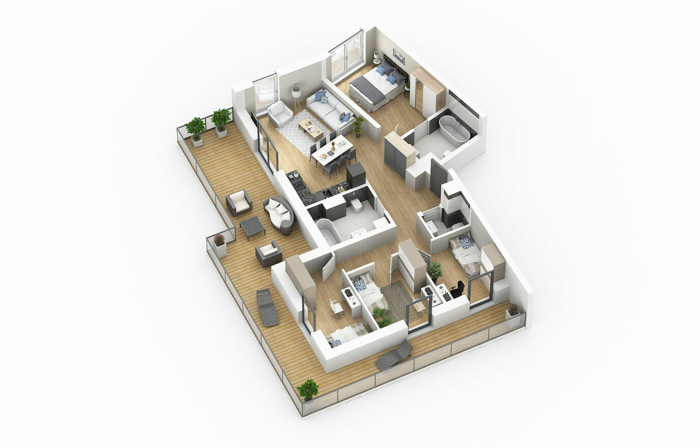 * Przestronne tarasy wyłożone wysokiej jakości deską Twinson, na którą producent oferuje 20 lat gwarancji,klimatyzacja