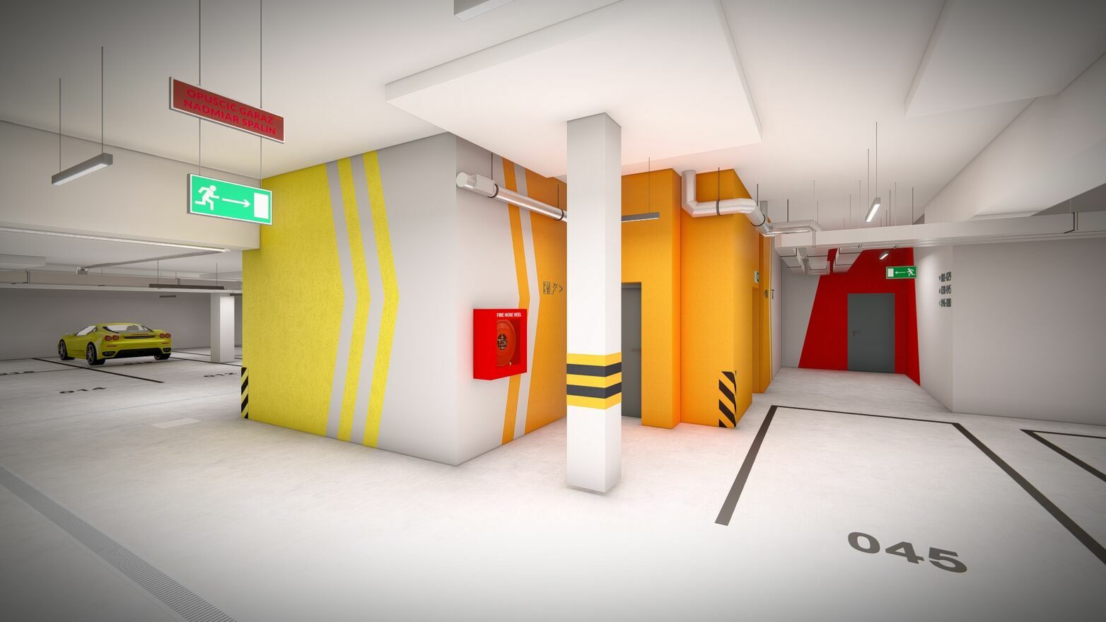 * Przestronna hala garażowa o wysokości min. 2,20 m z miejscami pojedynczymi i zależnymi oraz dodatkowymi boksami np. na motocykle, z możliwością zabudowania,
