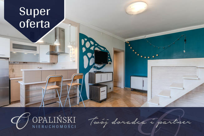 Biuro nieruchomości Pierwsze Piętro, przedstawia wyjątkowe pięciopokojowe mieszkanie z dużym tarasem, balkonem i ...