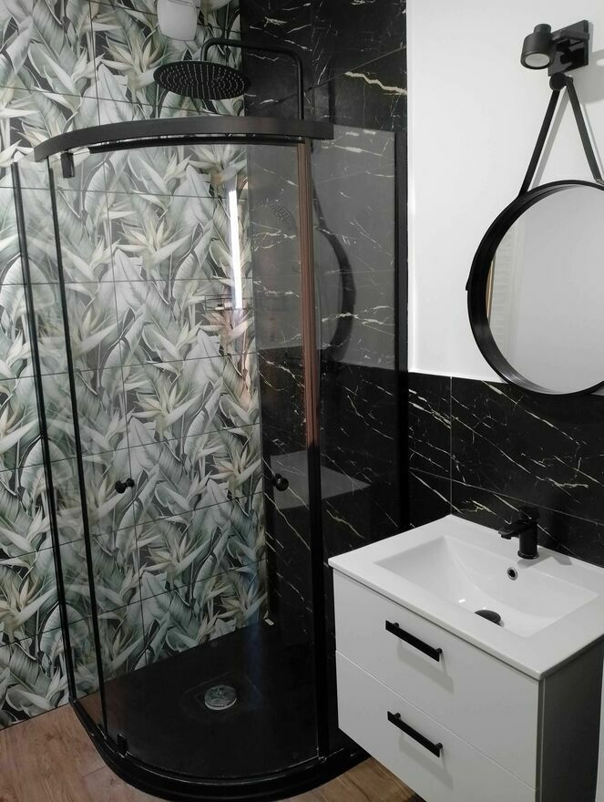 Wyposażona jest w niezbędny sprzęt tj. pralkę, lodówkę, piekarnik, płytę indukcyjną oraz TV.