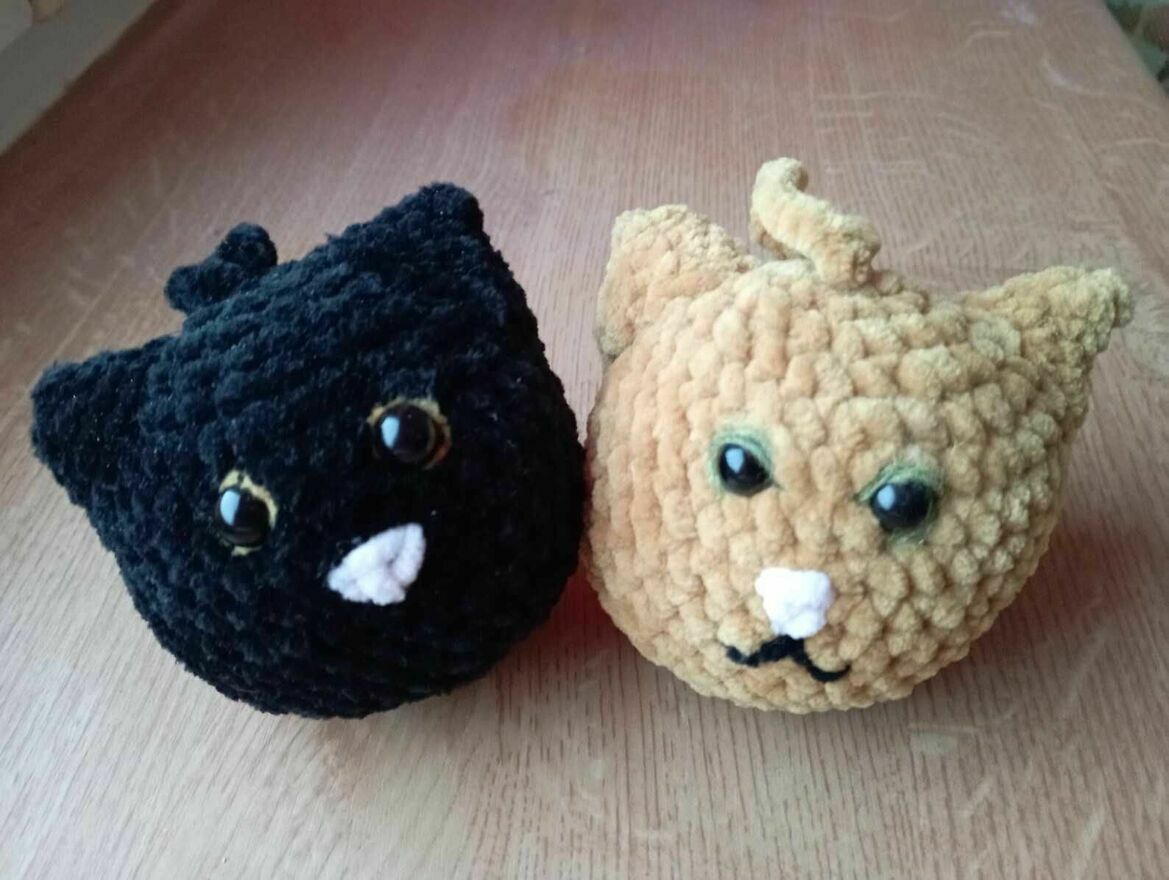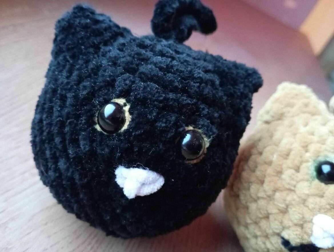 Miękka, pluszowa zawieszka amigurumi kot w kolorze czarnym lub złotym, wykonana ręcznie na szydełku według autorskiego wzoru.Idealna na prezent, jako brelok do torby lub plecaka lub jako maskotka do zabawy.