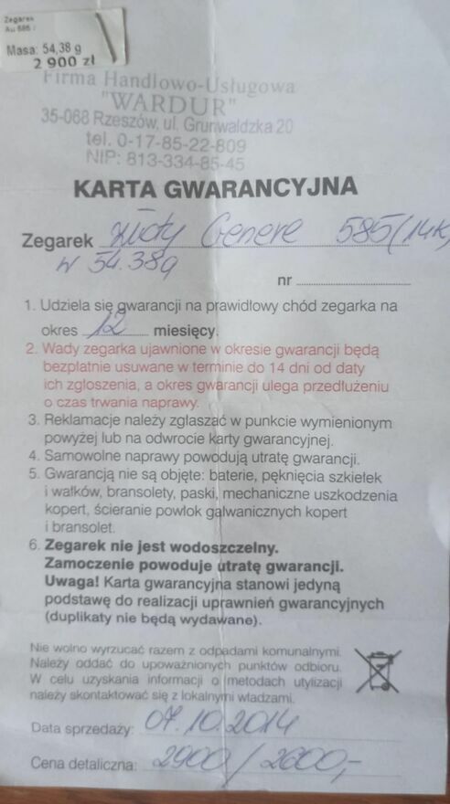 Dzień dobry,sprzedam złoty zegarek marki GENEVE.